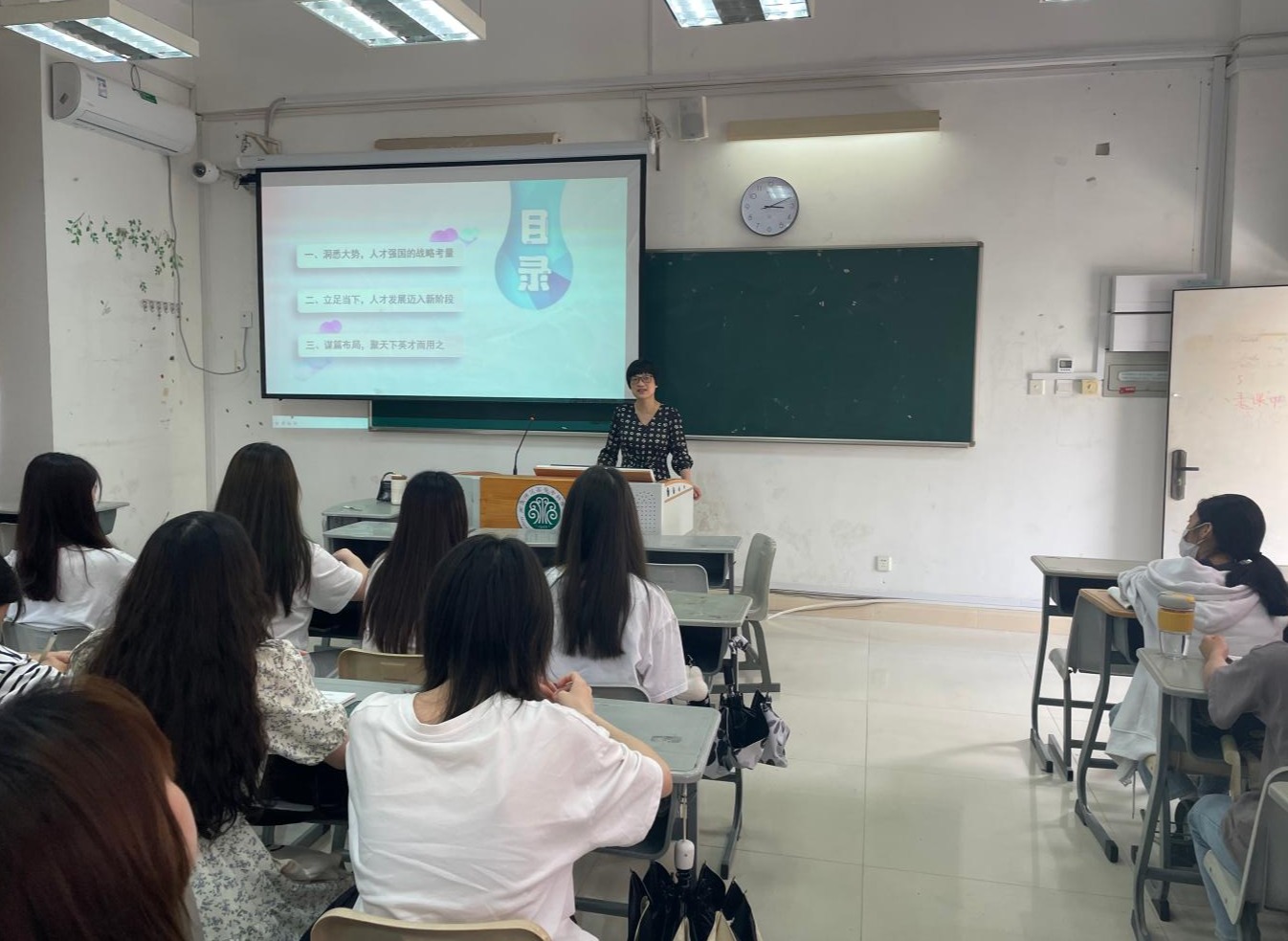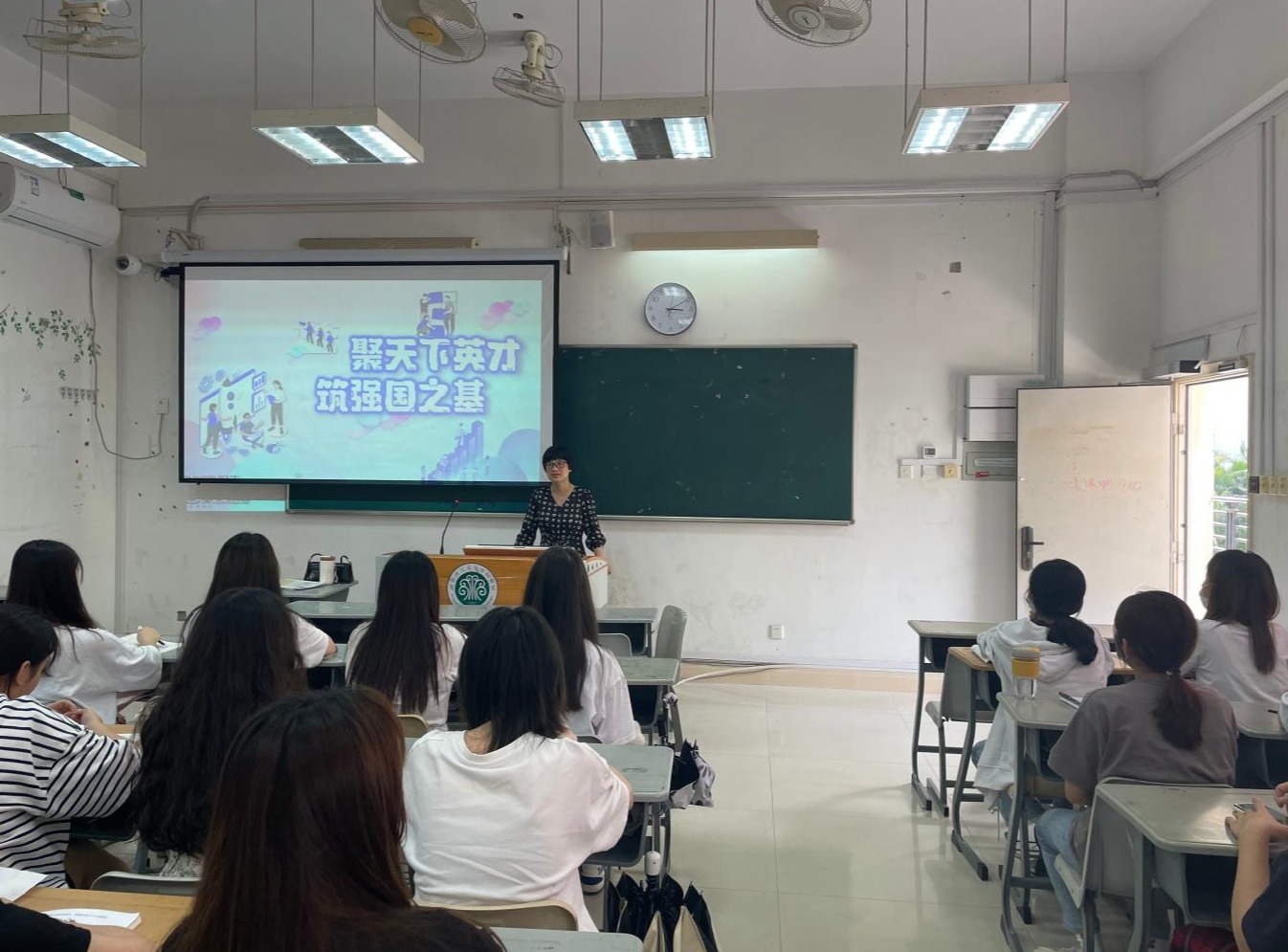 何少娴以《聚天下英才,筑强国之基》为主题,从“洞悉大势,人才强国的战略考量”“立足当下,人才发展迈入新阶段”“谋篇布局,聚天下英才而用之”三个方面,通过真实的数据和生动事例,详细讲述了科教兴国战略、人才强国战略、创新驱动发展战略等方面的相关内容,并鼓励在座学生努力学习、克服困难、突破自我,立志成为时代所需的栋梁之材,为建设社会主义现代化强国,实现中华民族伟大复兴贡献自己的力量。