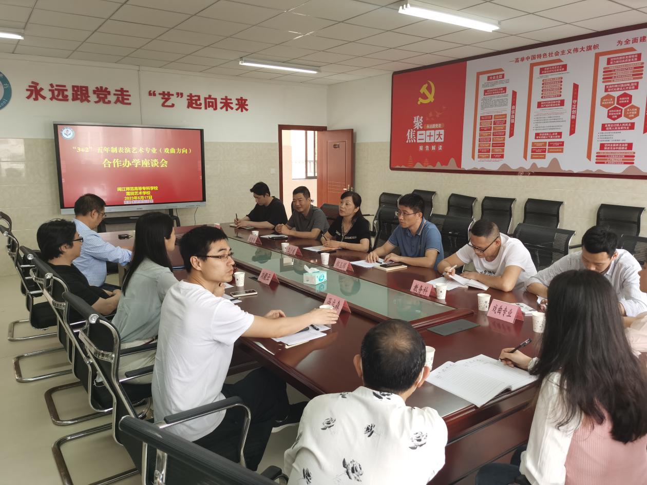 为优化中高职“3+2”分段培养项目管理,保证人才培养质量。5月17日,艺术学院院长徐青,学生处副处长傅正立及艺术学院相关教师赴莆田艺术学校开展表演艺术专业3+2合作办学座谈会,莆田艺术学校校长王少媛、党支部书记郑玉辉、副校长郑智专等参加会议。