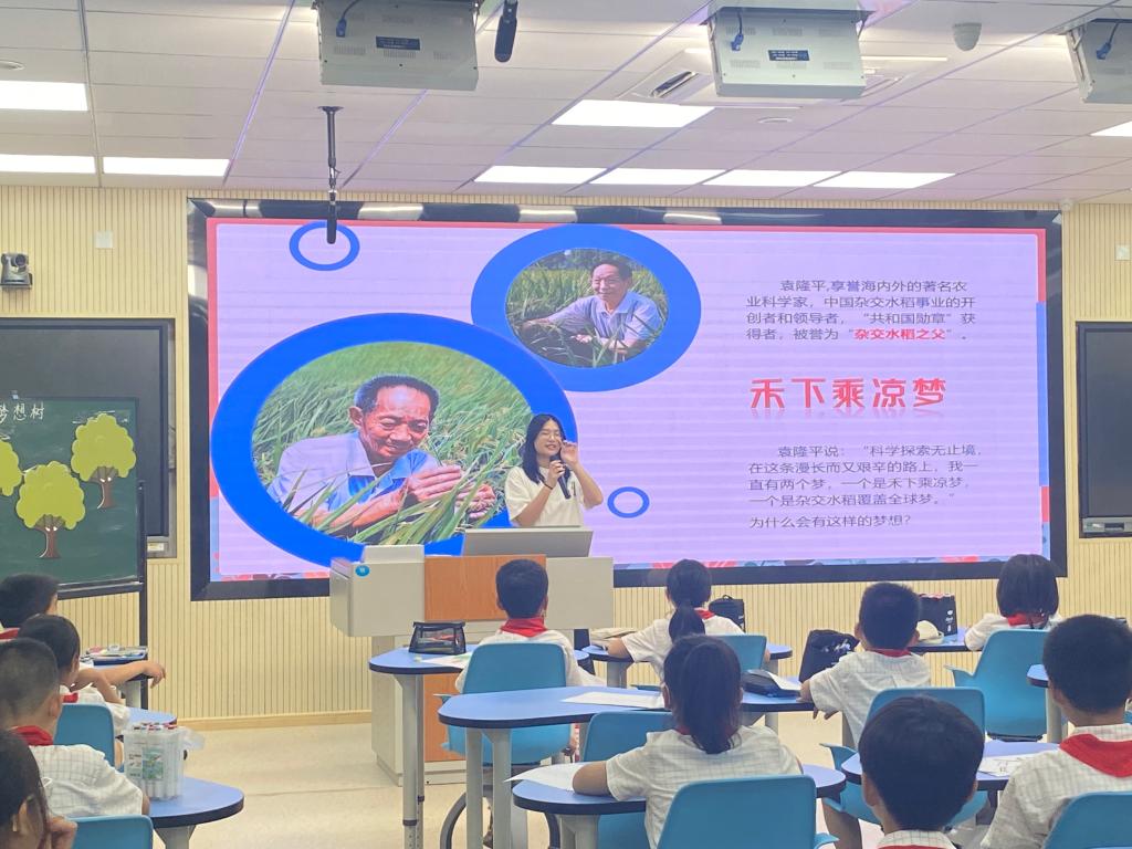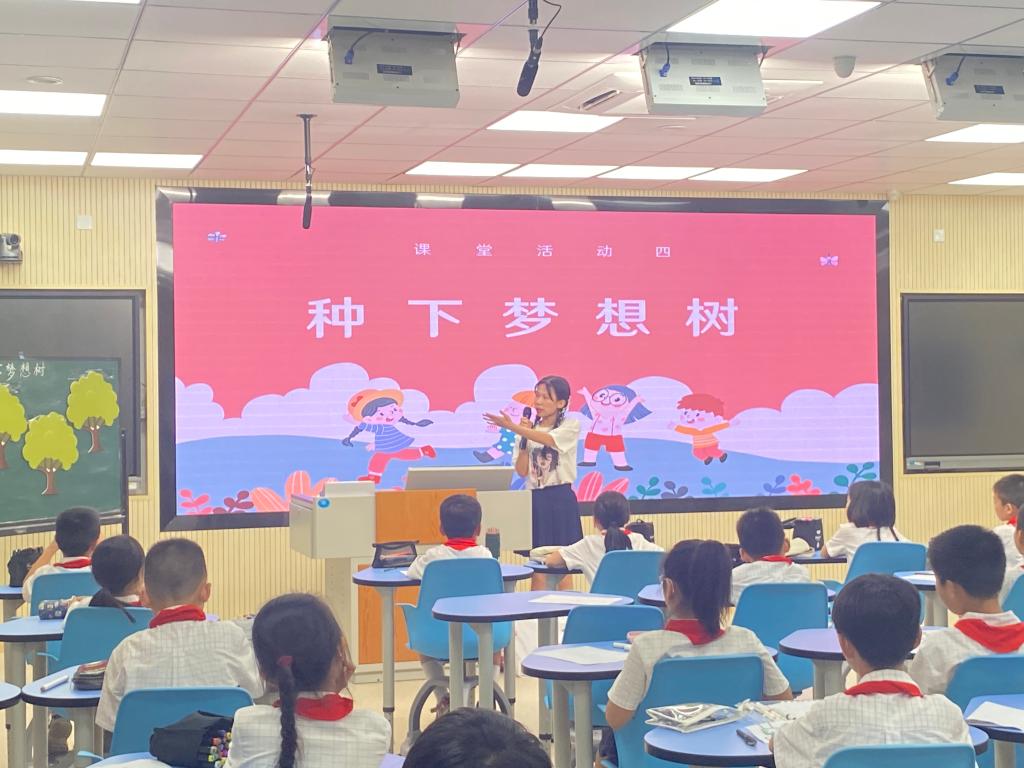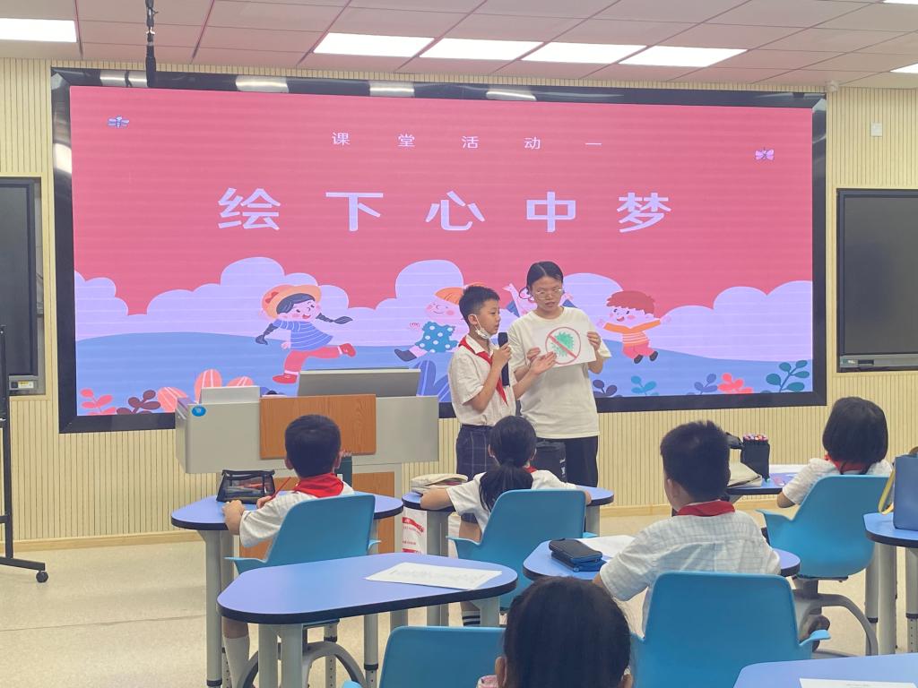 本次活动由小老师郑晴雨、曾玉惠、高圆圆、汤琳接续讲述,她们带领孩子们通过“绘下心中梦”、“致敬先辈梦”、“倾听稻田梦”、“种下梦想树”四个环节,思考国家梦,感悟民族梦,绘下个人梦想,在绘梦筑梦中为追梦圆梦立德立志。金雨青鼓励各位同学好好学习、天天向上,时刻准备着为实现中华民族伟大复兴的中国梦贡献力量。