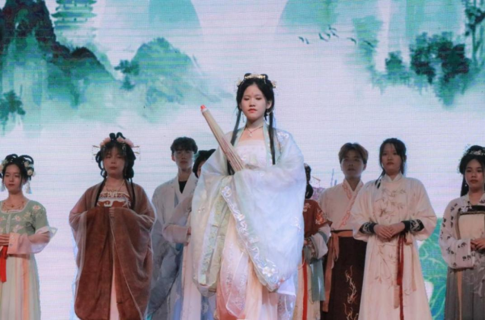 伴随着欢乐动听的旋律响起,开场啦啦操《小城夏天》点燃了整场晚会的氛围,展现着人文学子热情洋溢的青春姿态;汉服展示《霓裳翼阁,复我中华》一步一舞袖,展现博大精深的华夏文明,给观众以视觉的享受;朗诵《正值青春,用奋斗成就梦想》激励着人文学子坚定奋斗信念,厚植爱国情怀;相声、话剧、舞蹈等精彩环节,扣人心弦,将校园生活、师生情谊和家国情怀用特有的艺术表达方式展现;一曲耳熟能详的《光阴的故事》诉说着对青春的留恋,又希冀着对未来的期待,悠扬绵长的歌声,自然融汇成大合唱。整场晚会现场气氛热烈,精彩纷呈。