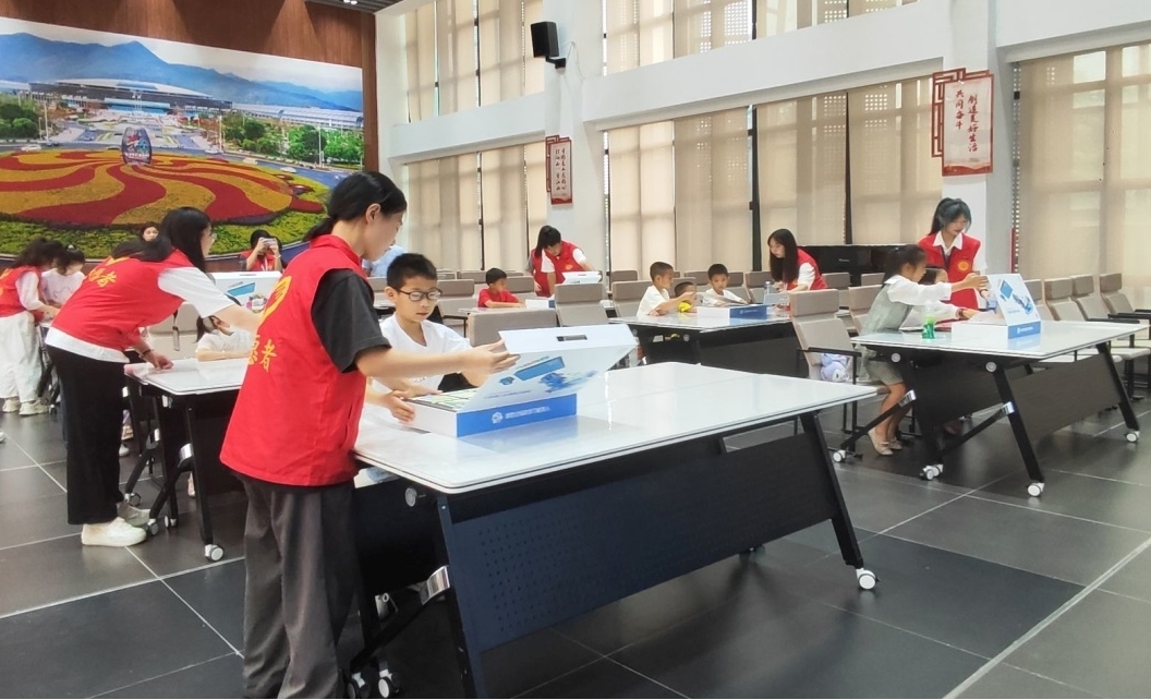 开班式结束后,学院学生志愿者讲授了《裤兜机器人》课程第一课。课堂上,“小老师”们全情投入教学,小朋友们专心致志,氛围活跃。通过趣味编程游戏和动手实践,给社区小朋友们带来了一场趣味横生的编程体验。