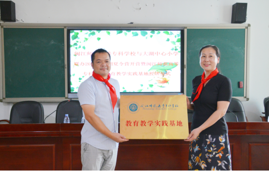 志愿支教开营仪式结束后,双方签订教育教学实践基地合作协议书,陈淑华和何仲信共同为教育实践基地揭牌。