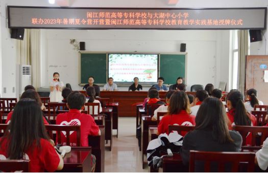 为深入学习宣传贯彻习近平新时代中国特色社会主义思想,充分发挥社会实践活动在大学生成长成才中的促进作用,7月4日上午,小学教育学院师生来到闽侯县大湖中心小学,开展以“红心向党二十大,共筑乡村振兴梦”为主题的暑期“三下乡”志愿支教活动暨大赢家体育app下载小学教育学院教育教学实践基地授牌仪式。闽侯县大湖中心小学校长何仲信,小学教育学院党总支书记陈淑华、副院长李骏、辅导员及四十余名支教小老师参加了仪式。