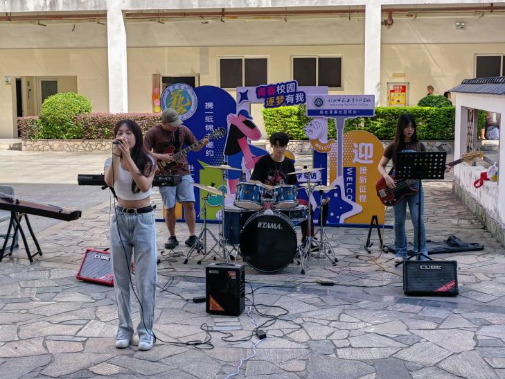 迎新当日,新生从踏入校园的第一刻起,耳边就传来了阵阵歌声,艺术学院的迎新处正在举办隆重而丰富的音乐表演,有繁星合唱团带来的《侯官是我家》,有电声乐队带来的歌曲串烧,有筝乐团带来的现场演奏。在轻松愉快的艺术氛围下,现场的新生和老生们也按捺不住心中的热血,轮流上场,自由歌唱。听着悠扬的曲目,穿过一幅幅美术教育专业精美的画作,许多人放慢了脚步,许多人不禁驻足观看,纷纷感叹艺院学子的专业水平。迎新期间,校党委书记陈荣生、校长杨建义、校党委副书记林旻、副校长谢敏峰、校纪委书记陈群等校领导也前来关心学院报到情况,同时也充分肯定了艺术学院此次的迎新表演的策划巧思。