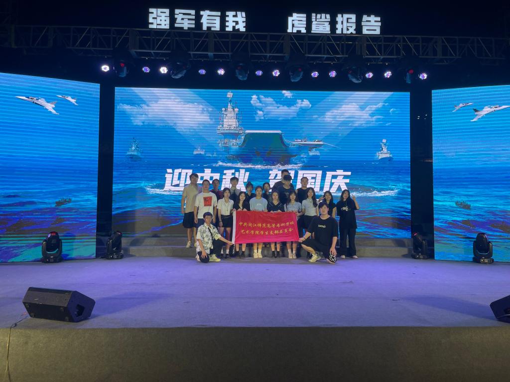 为进一步加强与部队的双拥共建关系,巩固发展新时代军民鱼水情,共同迎中秋贺国庆,9月23日,艺术学院学生支部周宇航书记、沈锦城老师和艺术学院21名学生代表赴中国人民解放军某部队参加“强军有我,虎鲨报告”——迎中秋贺国庆主题晚会。