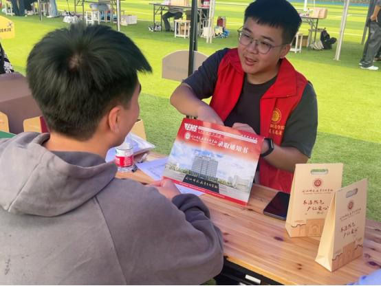 10月8日上午,在报到现场,校领导陈荣生、谢敏峰慰问迎新工作人员,并与新生和家长热情交流,为新生送上祝福。