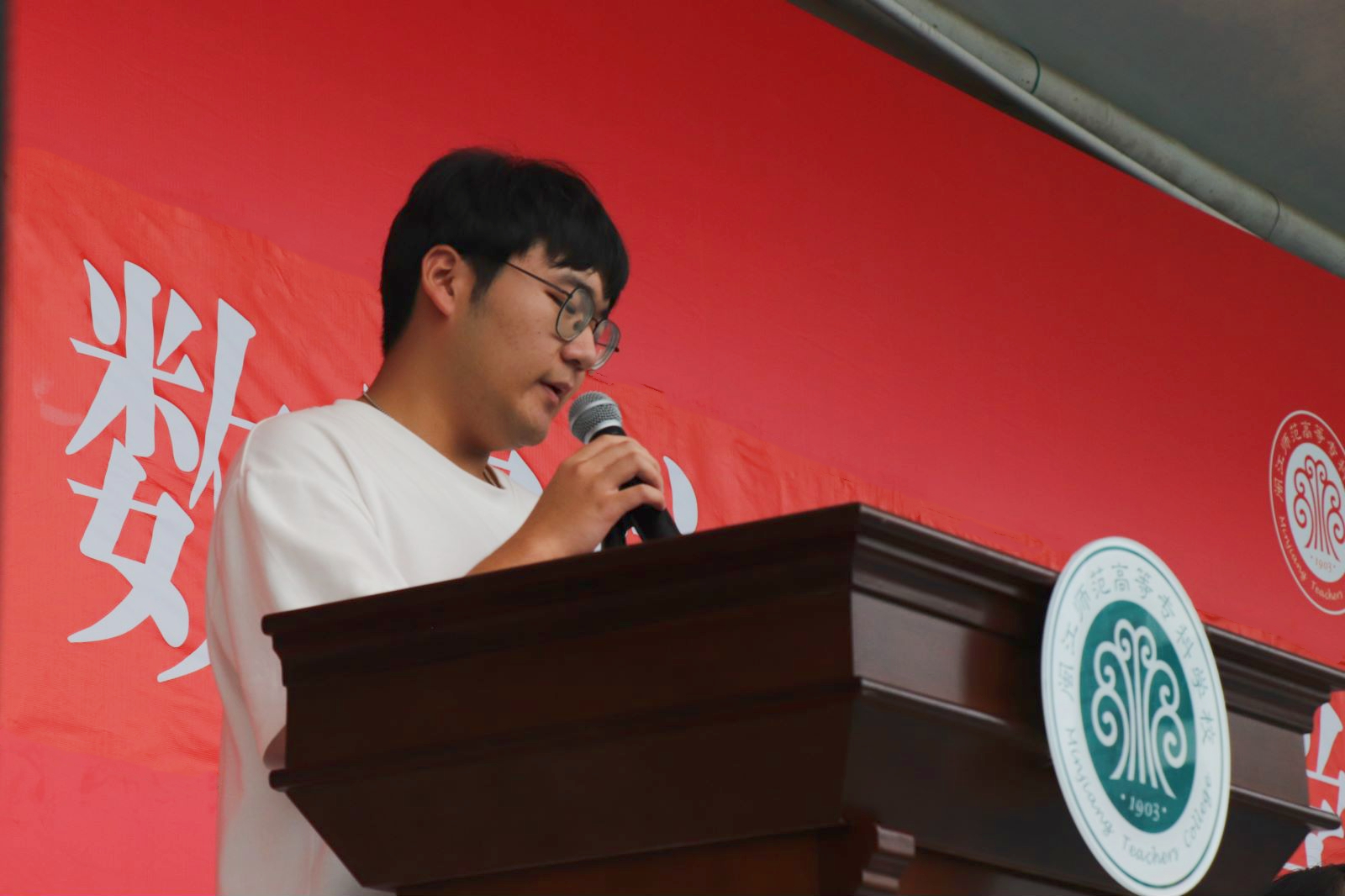 23级数字媒体技术的王祥宁同学代表新生发言。他向大家讲述了自己坎坷曲折的求学之路,分享“对大学生活有怎样的向往”、“我想成为一个怎样的人”的思考,勉励同学们珍惜大学时光,找到人生的志业与方向,做卓越而有趣的师专人,坦诚热烈地拥抱未来!