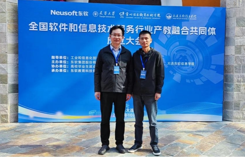 10月23日,由工业和信息化部教育与考试中心指导,天津大学、大连东软信息学院、常州信息职业技术学院和东软集团股份有限公司共同主办的全国软件和信息技术服务行业产教融合共同体成立大会在辽宁大连隆重召开。数字信息工程学院院长朱发财和软件技术专业教师朱振宇一同参加会议。