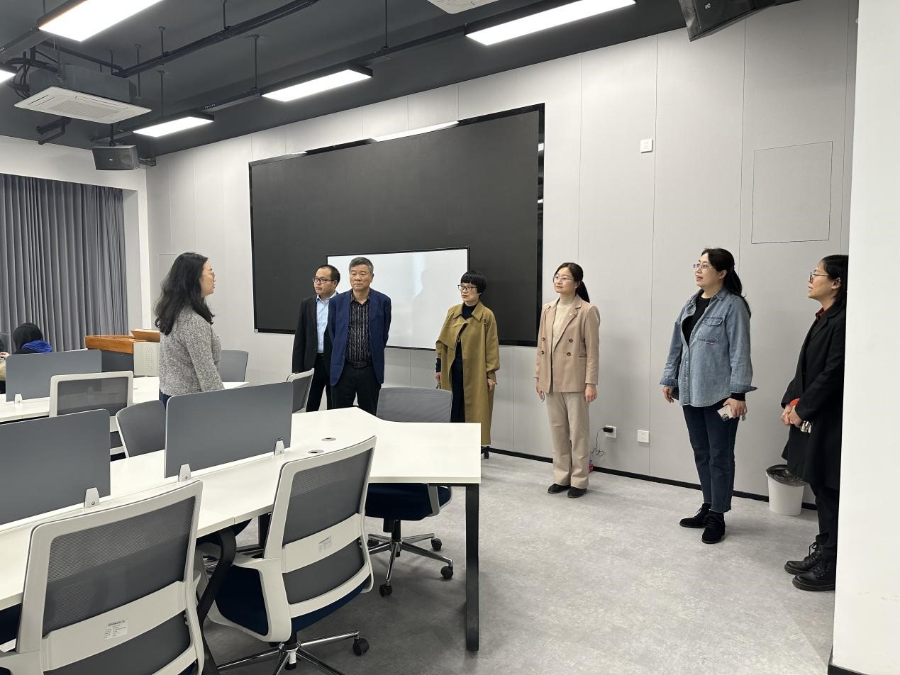 在参观完现代商贸实训中心后,双方在303会议室开展交流研讨。会上,何少娴对焦作师专一行表示热烈欢迎,她介绍了外语商贸学院的办学历史、办学特色和专业设置思路,并表达加强校际合作,互相学习共同成长的愿景。焦作师专一行重点对学校的竞赛管理和产教融合开展机制进行考察调研,仔细询问了学院的技能竞赛开展、校企合作相关工作情况。
