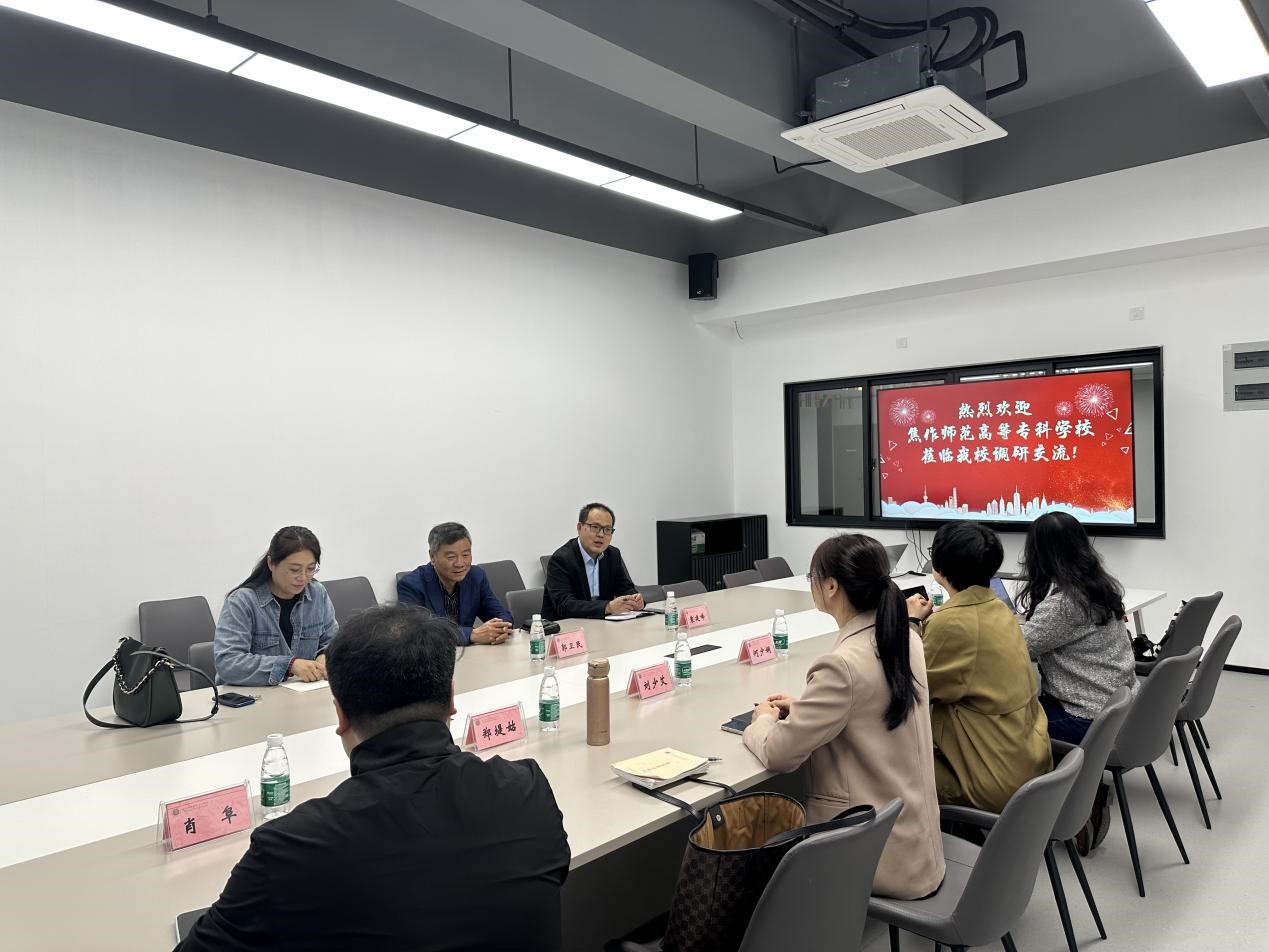 为进一步深化共享共建、促进校际发展,11月13日下午,焦作师范高等专科学校教务处处长郭卫民、外语经贸学院院长袁建峰、电子商务教研室主任李珺莅临大赢家体育app下载调研交流。外语商贸学院院长何少娴、教务处副处长刘少艾、外语商贸学院副院长陈海燕及学院骨干教师接待了焦作师专一行。
