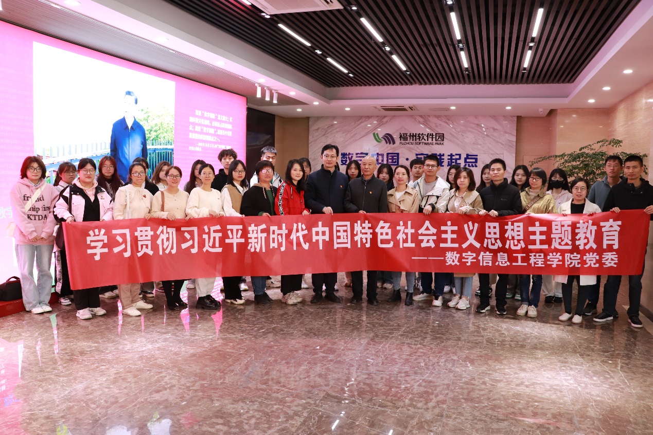 为推进学习贯彻习近平新时代中国特色社会主义思想主题教育走深走实,11月17日上午,数字信息工程学院党委书记陈欣、院长朱发财、副书记董秋锋带领师生党员及入党积极分子前往福州市软件园“数字中国·实践起点”展厅参观学习,开展主题党日活动。