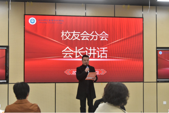 新当选的小学教育学院(福州师范学校)校友分会会长何鹏、李立雄分别发言。他们感谢校友的信任与支持,深情回顾了在校期间学习生活、奋斗拼搏的足迹,真情感恩母校、恩师对他们职业人生道路的帮助和指引,向将到来的百廿校庆送上祝福,并表示将认真履行职责,广泛联络和凝聚校友,增进校友之间的感情,促进校友与母校之间的联系,通过扎扎实实的服务,挖掘校友会的价值、发挥校友会的作用。