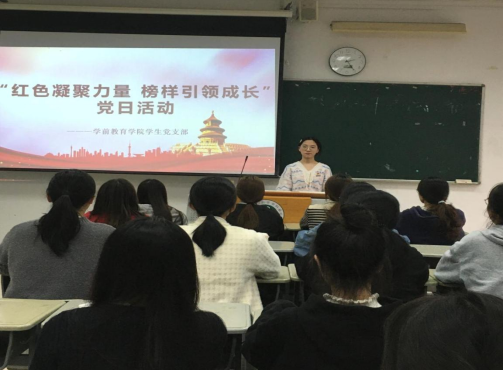 为深入开展学习贯彻习近平新时代中国特色社会主义思想主题教育,切实充分发挥先进典型示范引领作用,进一步激励全体学生沐浴榜样之光,砥砺奋斗之志,传递先进力量。11月15日下午,学前教育学院学生党支部组织开展了“红色凝聚力量,榜样引领成长”主题党日活动。