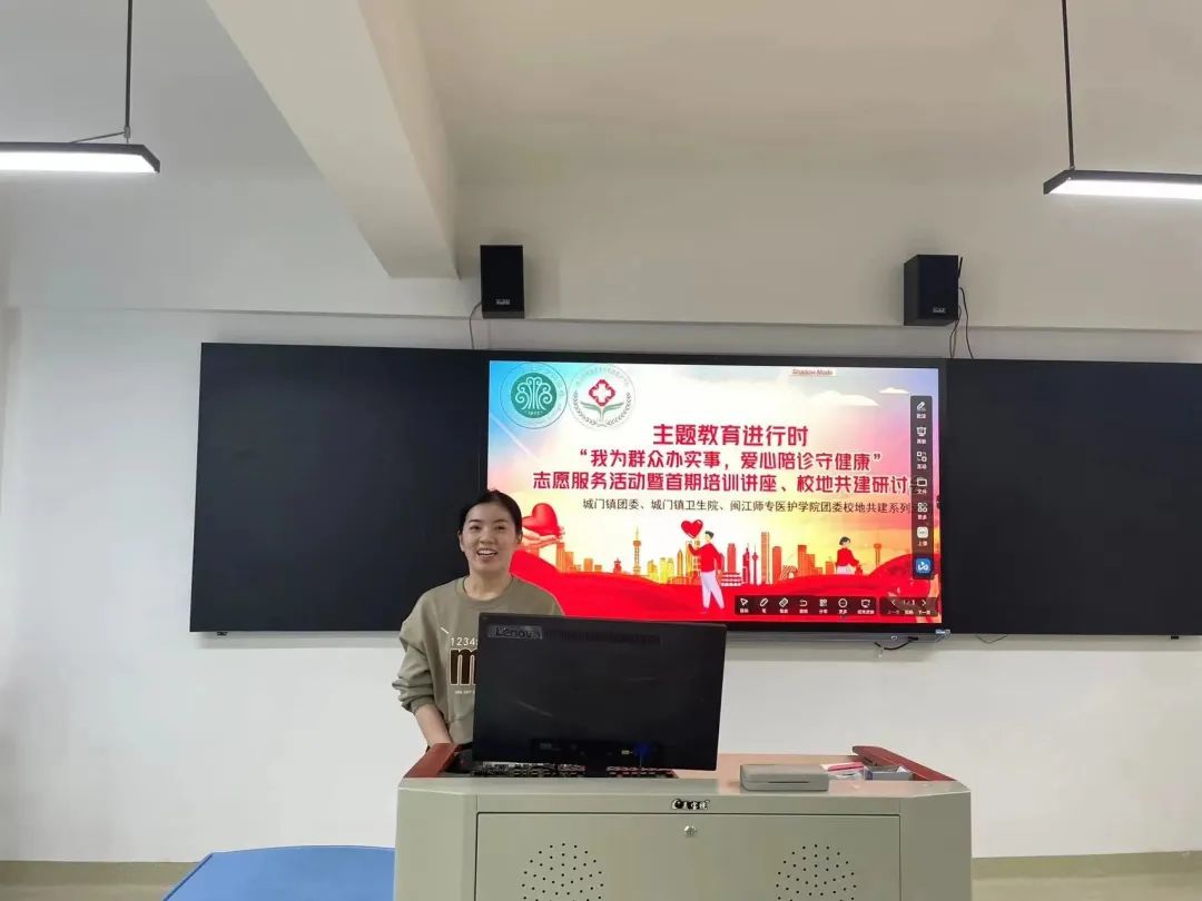 为推动主题教育走深走实,并将学习成果转化为推动发展、服务民生的新成效,11月22日下午,医护学院在仓山校区1号楼704多功能会议室举办“我为群众办实事,爱心陪诊守健康”志愿服务活动暨首期培训讲座、校地共建研讨会。城门镇团委书记张歆歆、城门镇卫生院副院长黄恩奇、公共卫生科、财务科相关医生以及医护学院团委书记许璐颖及志愿者们共同参与了此次活动。