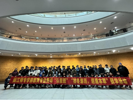 为了解不同大学的文化,拓宽男师的视界,12月3日上午,学前教育学院组织“弘毅班”男师赴福建中医药大学开展主题为“初冬游历,邂逅本草”的研学活动。21、22、23级弘毅班班主任林鹏、许琮皓、陈鹤带队,22级、23级弘毅班共计70余人参加活动。