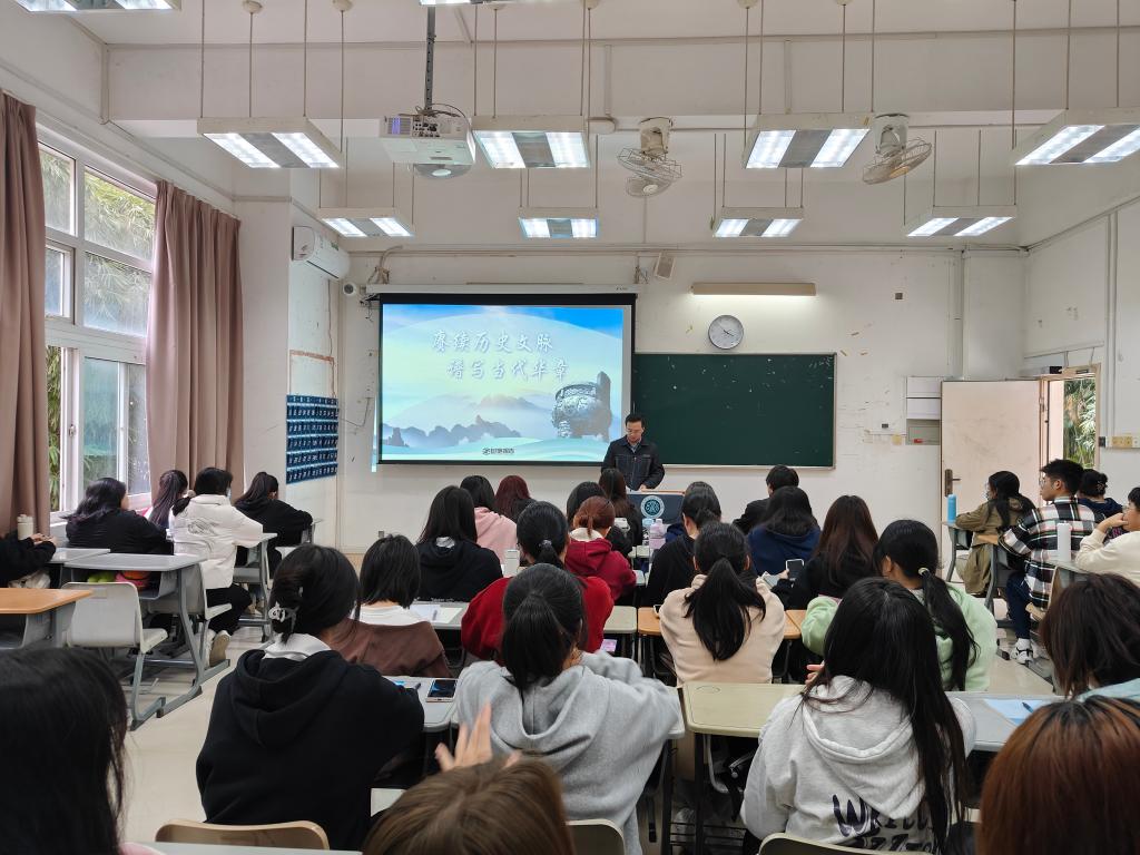 12月6日下午,在旗山校区1010教室,学前教育学院党委副书记王海波为23学前教育2班的学生讲授形势与政策课,主题为《赓续历史文脉 谱写当代华章》。