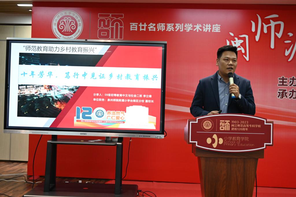 百廿闽师,弘文励教,情系山海。为庆祝建校120周年,12月10日下午,由小学教育学院承办的“闽师源流:师范教育助力乡村振兴”校友讲坛在小学教育公共实训基地鳌峰书院举办。小学教育学院师生与历届校友共130余人参加了活动。
