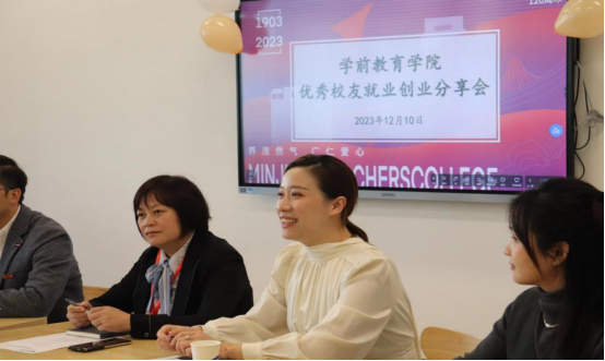 为了解校友的就业创业经验,帮助同学们更好地规划职业发展,12月10日上午,学前教育学院于百廿校庆之际邀请了福州市鼓楼区阳光思瑞培训中心有限公司总经理、学前教育学院校友会会长张燕等优秀校友代表为2024届毕业生举办就业创业经验分享会。仓山区红树林幼儿园园长张小莲、学前教育学院领导以及2024届毕业生代表参加本次会议。