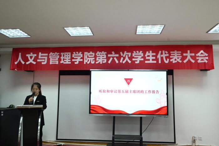 为进一步激发学生组织活力,加强学院民主管理,促进学院学生会工作向好向上发展,12月14日,人文与管理学院于教学楼3-103教室召开了第六次学生代表大会。学院团委书记黄益群老师、23级辅导员陈少霞老师、21级辅导员周海英老师、22级辅导员康书凌老师、22级辅导员李姗老师、23级辅导员陈佳榕老师出席本次会议,58名大会代表共同参加此次会议。