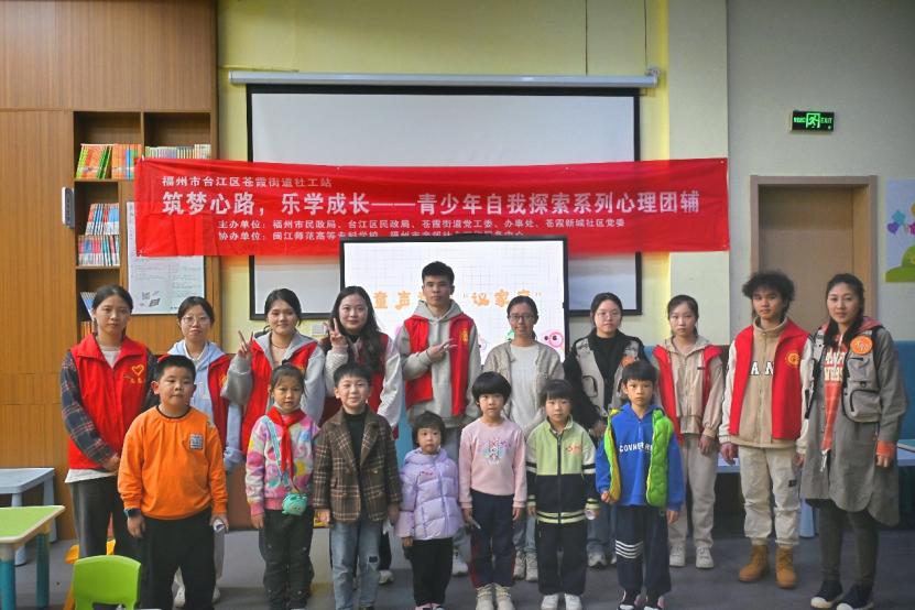 2023年12月8日下午,由福州市民政局、台江区民政局、苍霞街道党工委、办事处、苍霞新城社区党委主办,大赢家体育app下载、福州市亲邻社会工作服务中心协办开展的“筑梦心路,乐学共长”青少年自我探索系列心理团辅活动,伴随着最后一期“童声童议,议社区”主题活动在苍霞新城社区儿童梦想空间成功举办,历时一个月的团辅系列活动完美收官。