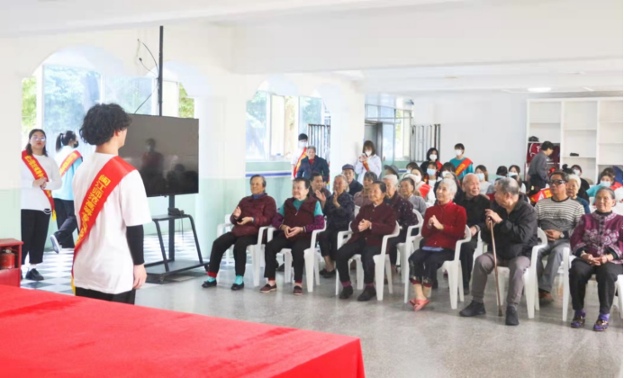 活动开始,吴海滨老师首先表示了对颐养中心老人们的亲切问候,祝愿各位爷爷奶奶身体健康,希望同学们精心准备的节目可以给爷爷奶奶们带来欢乐。活动在郑媛媛、刘许伟同学合唱的《我和我的祖国》中正式拉开序幕,感情充沛、嘹亮铿锵的歌声一出就赢得了在场老人们的热烈掌声。歌舞串烧、南音表演,每个精彩的节目都是从老人们喜闻乐见的角度进行精心的编排,力求让所有老人都满意。表演结束后,大赢家体育app下载青年志愿者们和老人们进行亲切的交谈,同学们脸上洋溢着天真温暖的笑容,老人们也和蔼可亲地笑着。在这冬天来临之际,大赢家体育app下载青年志愿者用实际行动点亮老人们内心的烛光,伴随着他们暖洋洋的开始这个冬季。