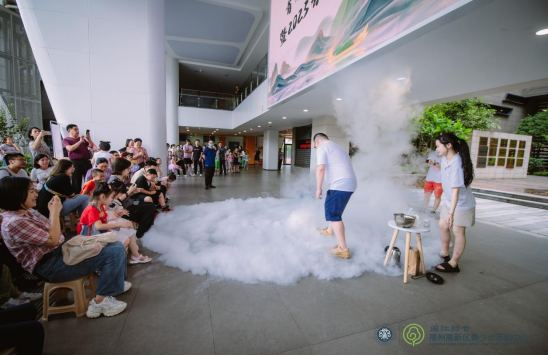 此次科技文化艺术节包括科学剧场秀、2023年春季教学成果展、诗意国韵端午游园会、课程互动区和暑期招生咨询会五个模块。在酷炫新奇的科学剧场秀中,当干冰遇上热水迅速升华,产生云雾缭绕的仙境般景象,引得孩子们兴奋得上前“腾云驾雾”。柔软棉花糖放入其中瞬间脆硬,用科学视角诠释创意美食。寓教于乐的方式,让孩子们学习生动的科学知识,感受科学独特魅力,从而达到科普教育意义效果。