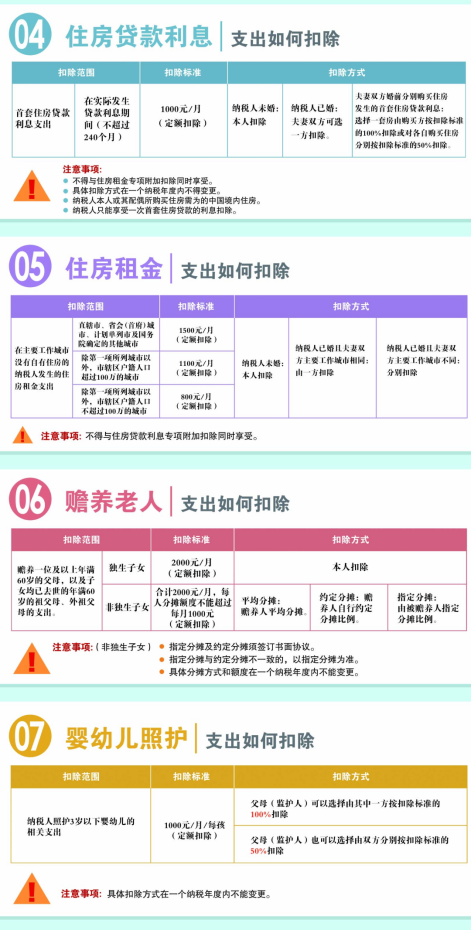 7项专项附加扣除政策要点