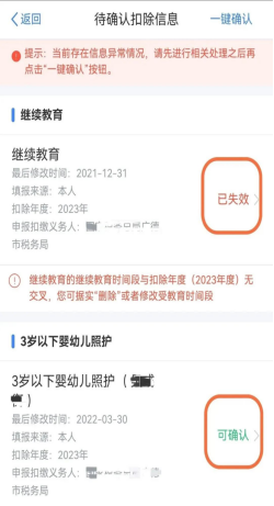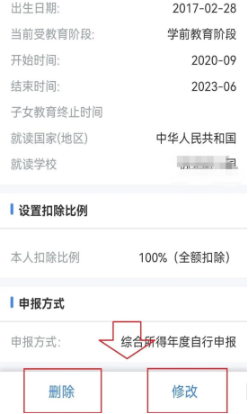 比如继续教育信息已失效,2023年不再申报住房贷款利息,赡养老人、子女教育的扣除比例在2023年需要调整等情况,需要对扣除信息进行修改或删除。
