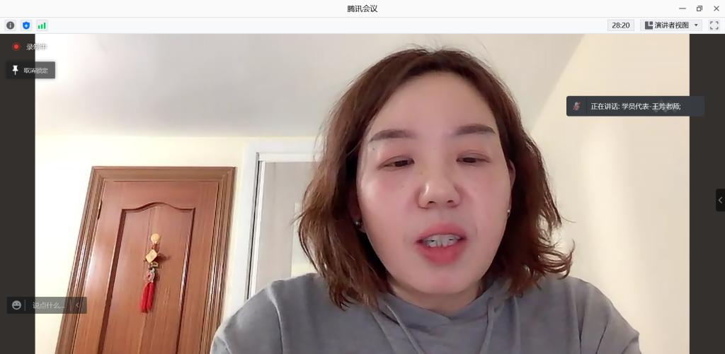 来自西班牙的王芳老师作为学员代表发言。她分享了自己在本期研修班所取得的成果,并向福州市人民政府侨务办公室和闽江师专对研修班的精心筹备与周到安排表示衷心感谢。她表示将在日后的教学中巧用、活用在本期研修班所学到的知识,更好地为华教事业奉献。