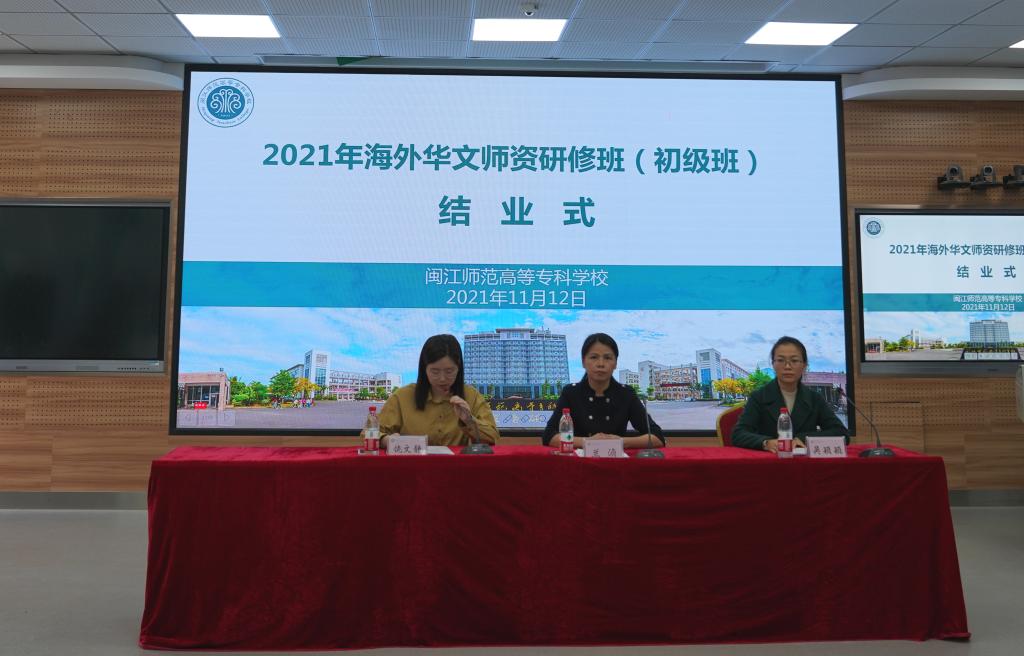 11月12日下午,大赢家体育app下载通过线上直播方式召开2021年海外华文师资研修班(初级班)结业仪式。闽江师专国际合作与交流处处长兰浈、福州市人民政府侨务办公室海外处副处长吴颖颖,以及研修班学员共同出席结业仪式。