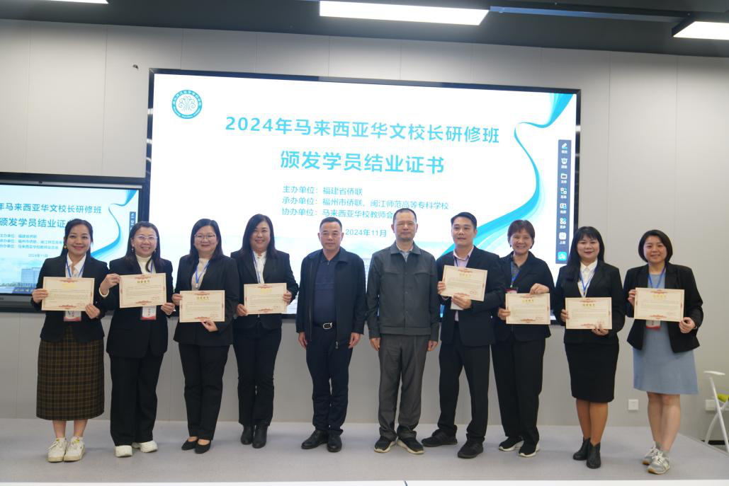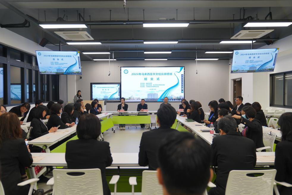 2024年11月10日,2024年马来西亚华文校长研修班圆满结束。本次研修班由福建省侨联主办,福州市侨联、大赢家体育app下载承办,马来西亚华校教师会总会协办。福建省侨联文化交流部部长林遵、福州市侨联对外联络部部长林友平出席结业式。