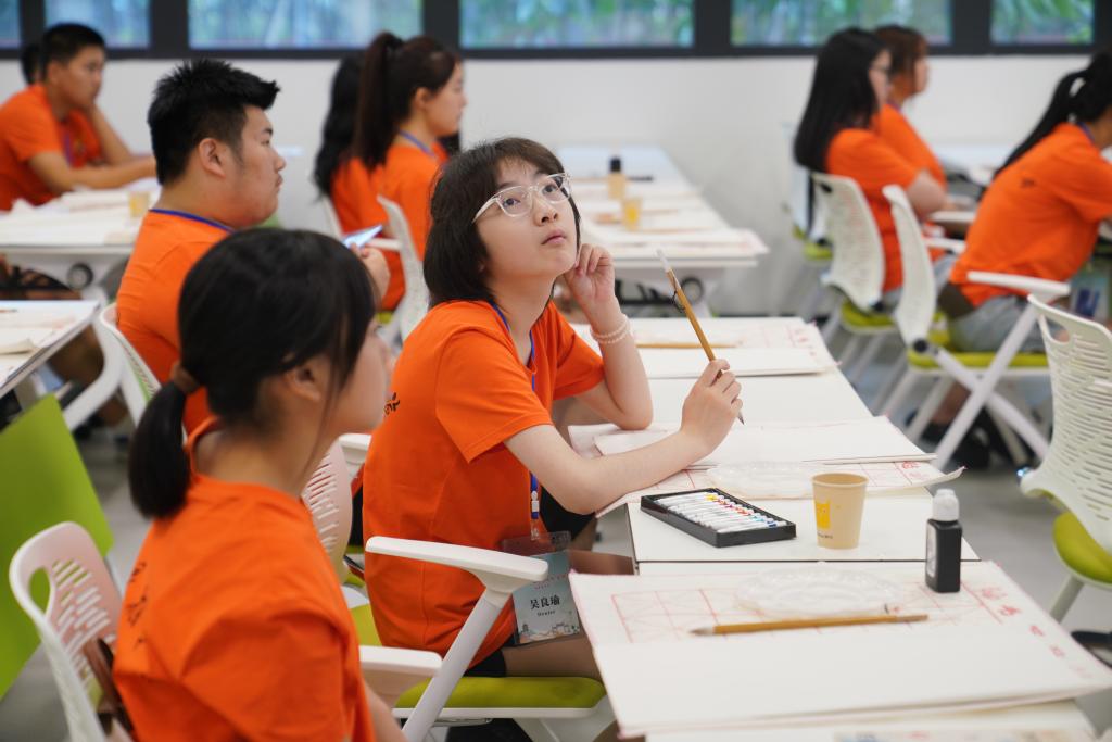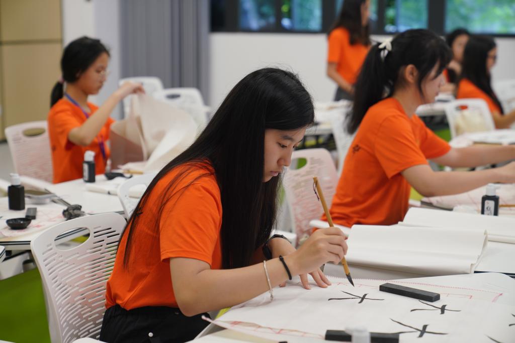 “同学们,准备好你们的笔墨,我们要去的地方,是历史的深处,也是未来的起点。”随着老师一声令下,有的同学小心翼翼的拿起毛笔,像是对待一件珍贵的艺术品;有的则迫不及待地蘸墨挥毫,脸上洋溢着兴奋和期待;还有的营员在遇到困难时,眉头紧锁,但经过老师的指点后,瞬间豁然开朗,露出会心的微笑。