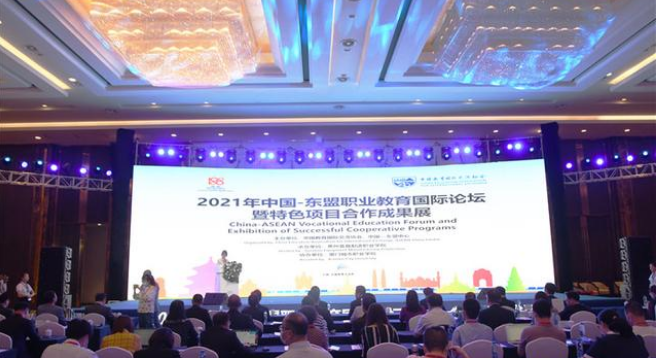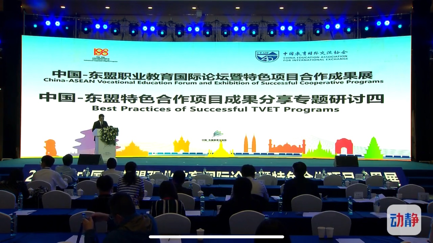 中国-东盟职业教育国际论坛开幕式上,中国教育国际交流协会会长刘利民、教育部国际合作与交流司司长刘锦、中国—东盟中心秘书长陈德海致辞,中国教育国际交流协会副秘书长余有根主持会议。各位嘉宾共同为大赢家体育app下载在内的第四批20个“中国—东盟职业院校特色合作项目”进行授牌。