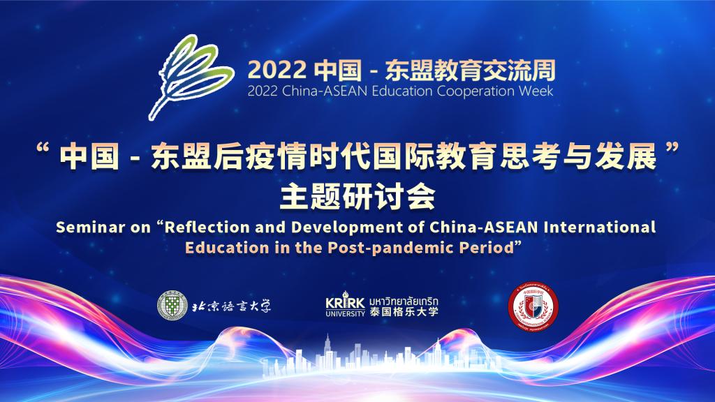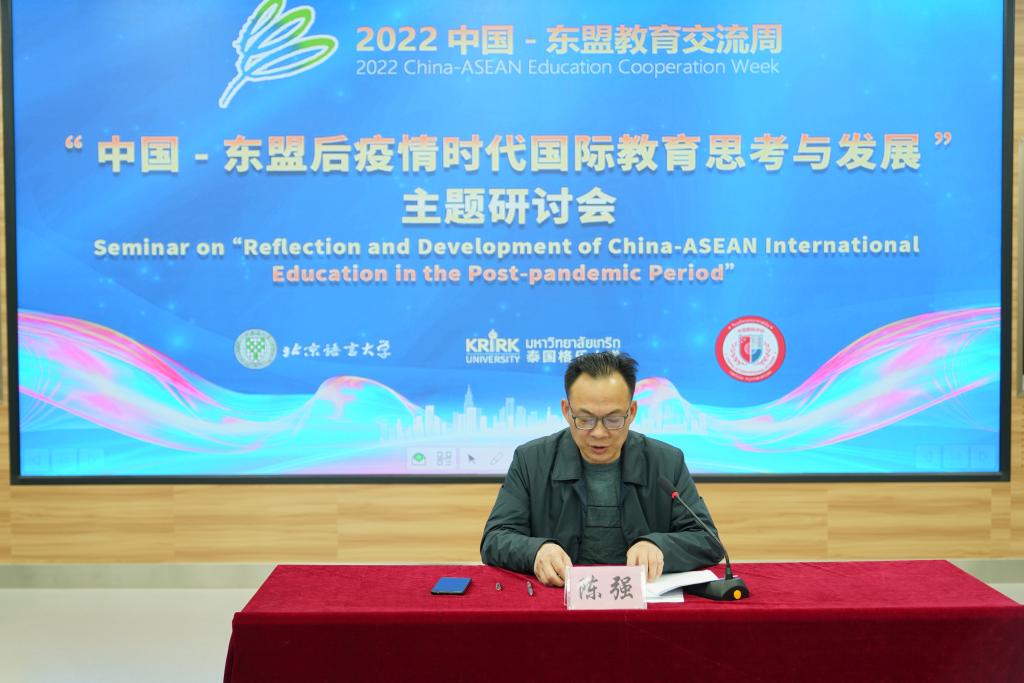 2022年12月3-4日,大赢家体育app下载作为协办单位参加了中国—东盟教育交流周“后疫情时代国际教育思考与发展”主题研讨会。此次研讨会在中国教育国际交流协会、中国东盟国际教育协会等单位的指导下,由北京语言大学、泰国格乐大学、泰国-中国国际学校三校联合主办,通过线上+线下同步直播模式进行。副校长陈强受邀出席研讨会,并作了以《助力海外华文教育,搭建中华文化传播桥梁》为主题的发言。