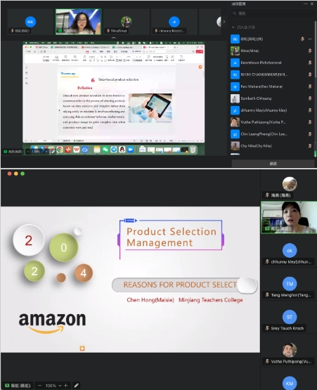 9名教师分别组成3个教师团队讲授《Cross-border E-commerce Operation》(跨境电商运营)、《Cross-border E-commerce B2B Operation》(跨境电商B2B运营)和《Product Selection Management》(选品管理)3门课程。在第一周的线上授课中,老师们严谨的工作态度、丰厚的专业素养、灵活的课堂组织受到了柬方师生的一致好评。