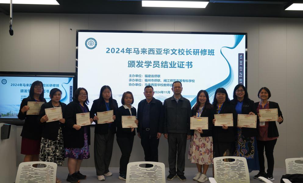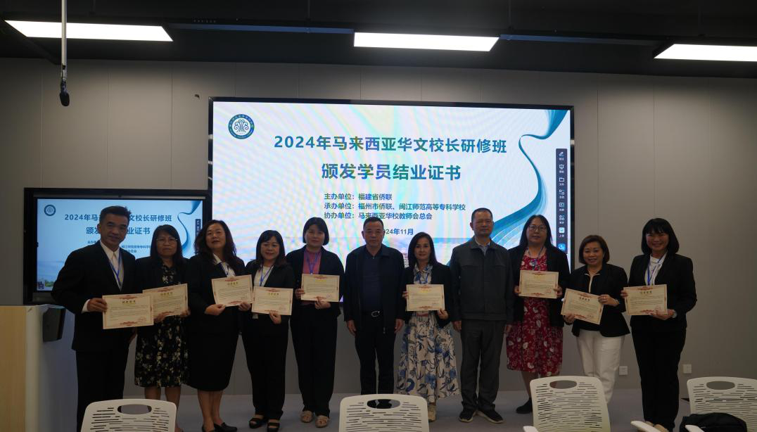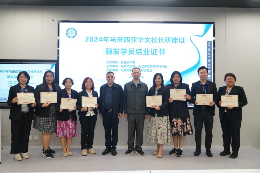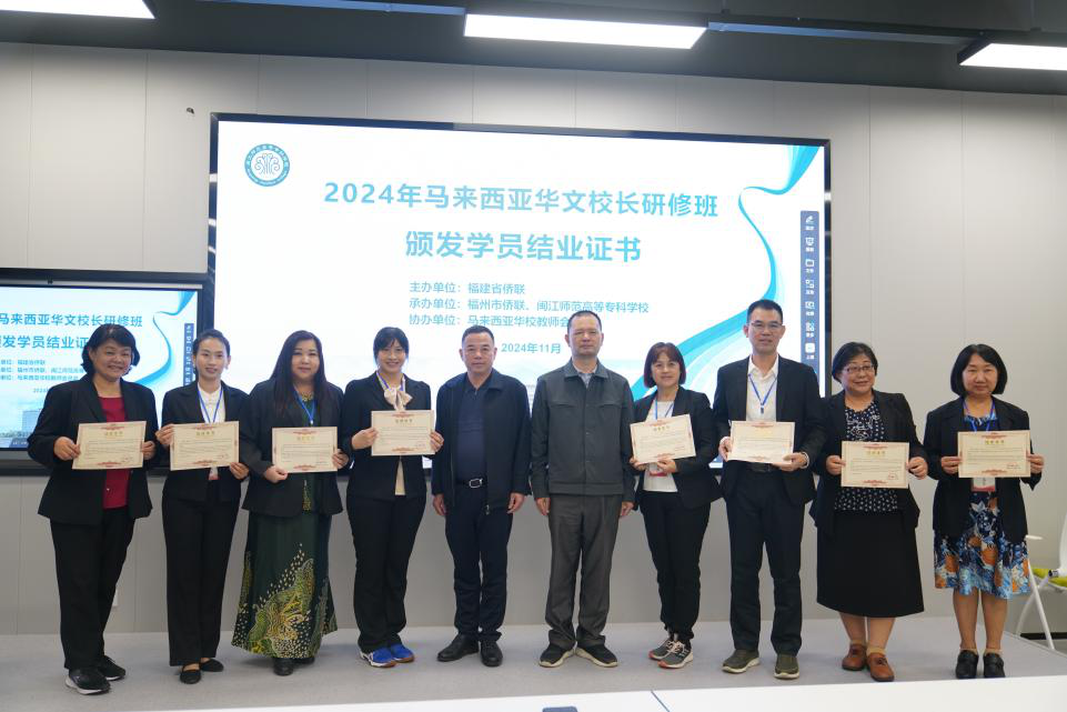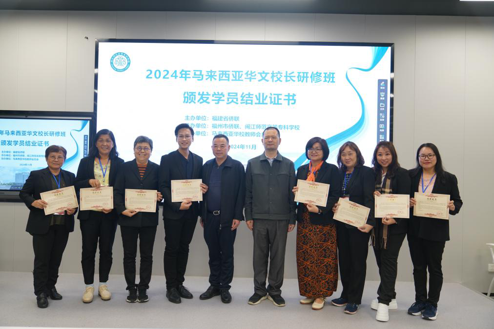 2024年11月10日,2024年马来西亚华文校长研修班圆满结束。本次研修班由福建省侨联主办,福州市侨联、大赢家体育app下载承办,马来西亚华校教师会总会协办。福建省侨联文化交流部部长林遵、福州市侨联对外联络部部长林友平出席结业式。