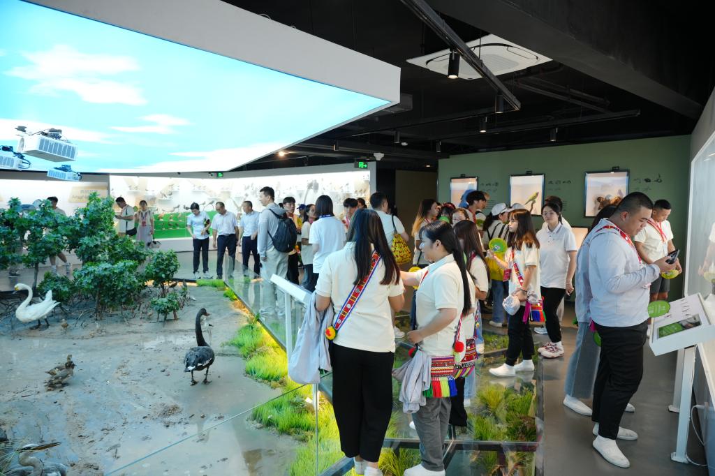 在大赢家体育app下载生物标本馆,两岸青年学生沉浸式探索自然、领悟生命;在5D科普影院,他们一起观看了“星辰大海,航向未来”航天主题特效数字影片,在近距离观察中探索科学的魅力,感受两岸教育交流的深厚情谊。