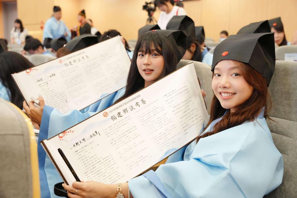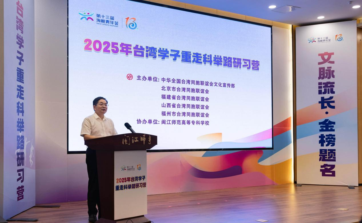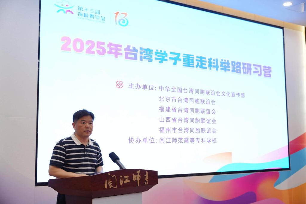 8月6日,由全国台联文宣部、北京市台联、福建省台联、山西省台联、福州市台联联合主办,闽江师专协办的第十三届海峡青年荟集中活动之2025年台湾学子重走科举路研习营活动开营式在旗山校区举行。