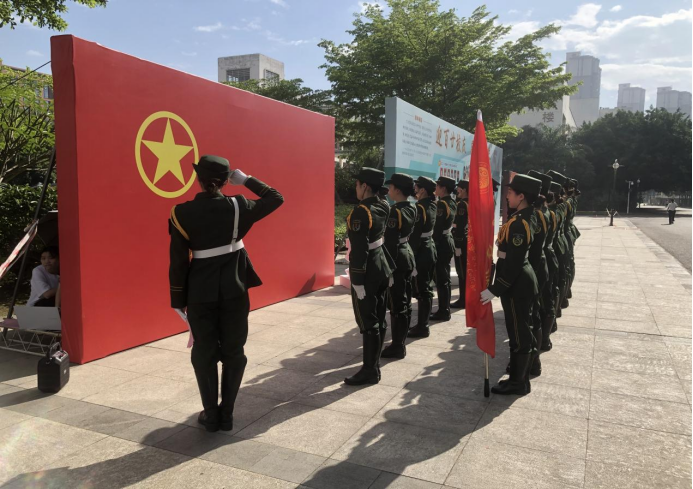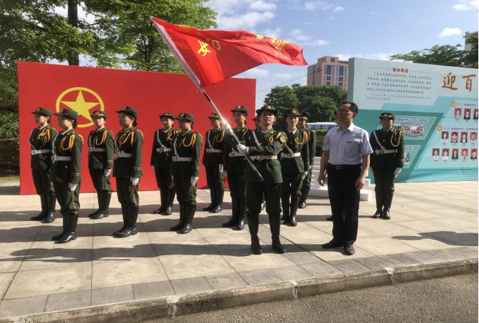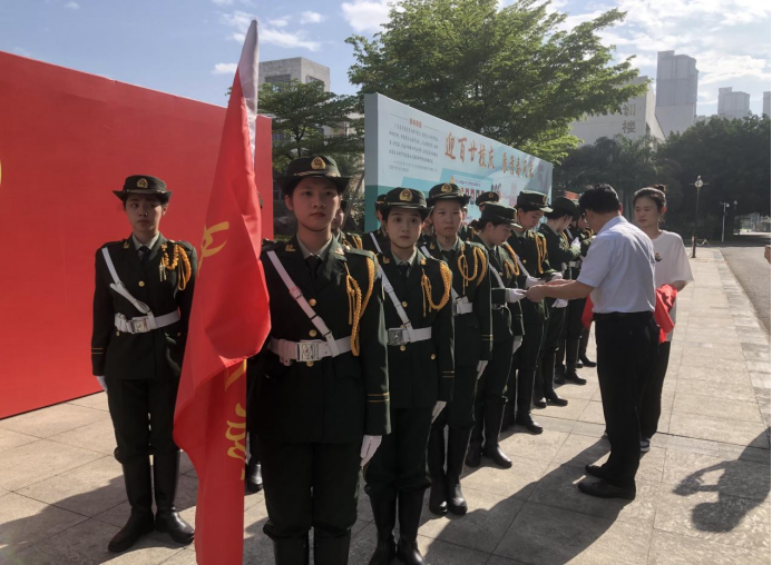 5月4日清晨,大赢家体育app下载旗山校区首届女子国旗班组建仪式在旗山校区广场隆重举行。副校长陈强、校团委有关负责人以及旗山校区首届女子国旗班全体队员参加了仪式。