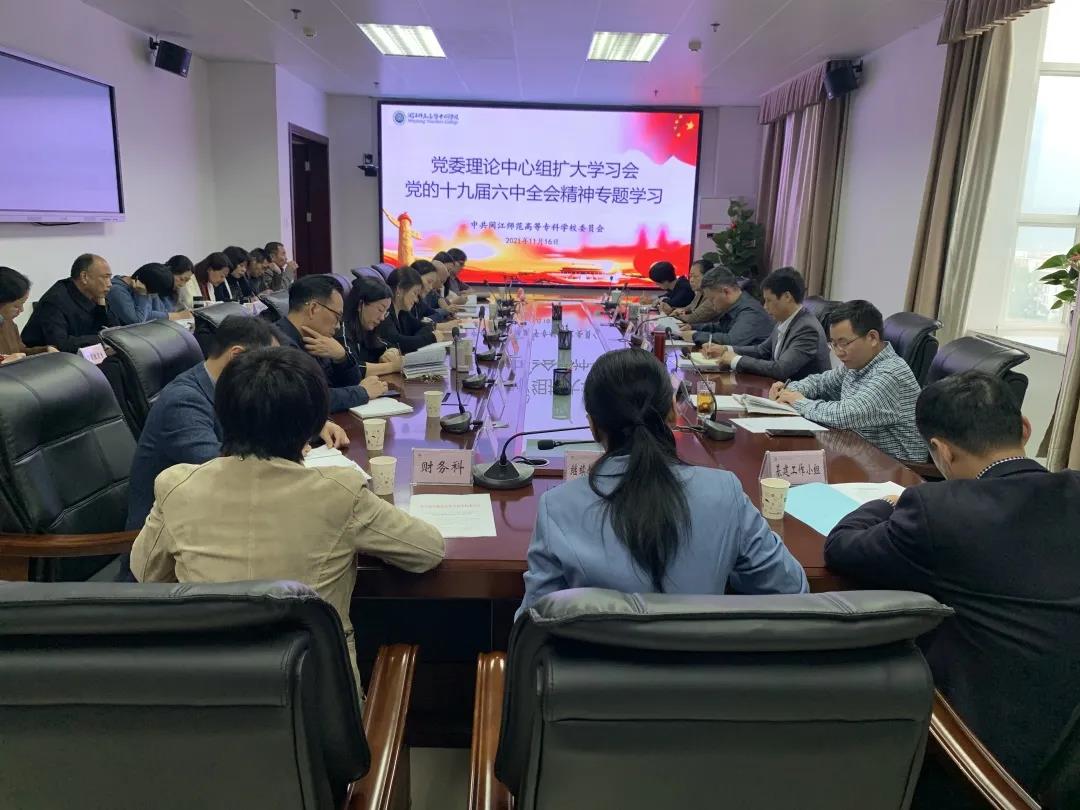 11月16日,大赢家体育app下载召开党委理论学习中心组(扩大)学习会,传达学习党的十九届六中全会精神和省委、市委常委会(扩大)会议精神,研究部署学校学习宣传贯彻意见。会议由党委书记陈荣生主持。校领导、各处室、系部负责人、党总支、直属党支部书记、附属单位党政主要负责人参加会议。