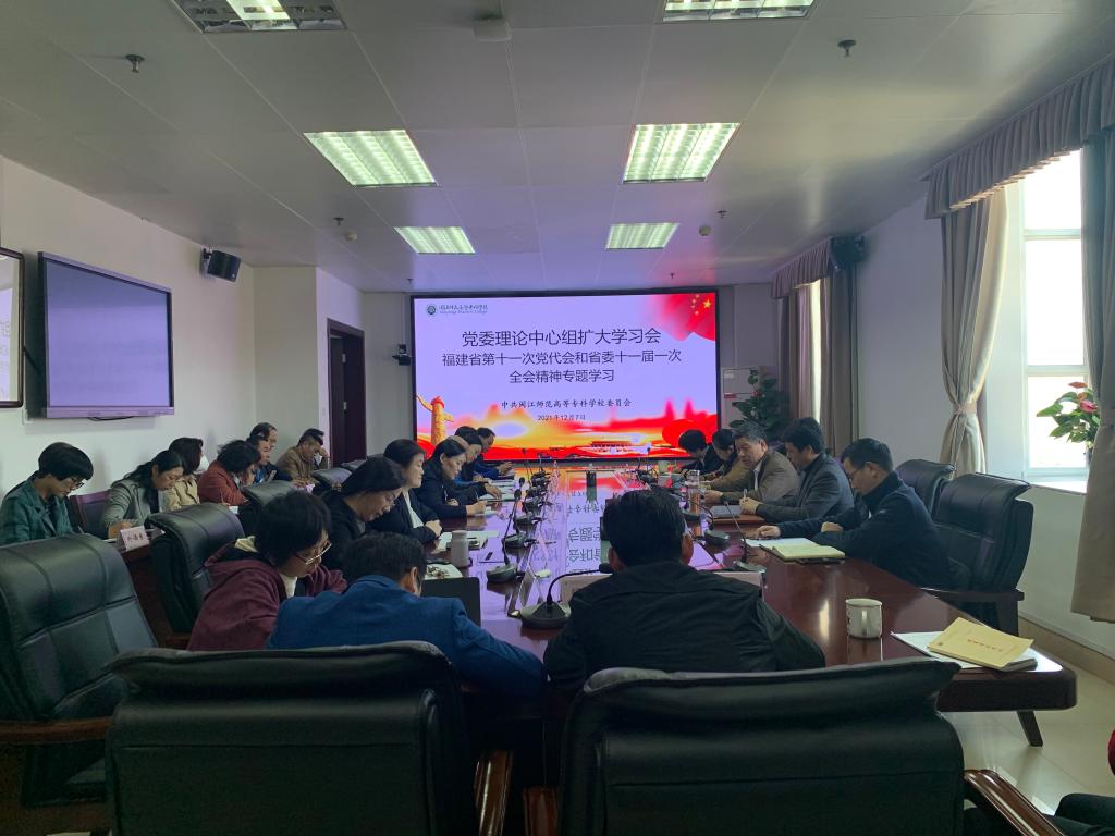 12月7日,大赢家体育app下载召开党委理论学习中心组(扩大)学习会,传达学习省第十一次党代会和省委十一届一次全会精神,研究部署学校学习宣传贯彻意见。会议由党委书记陈荣生主持。校领导、各处室、系部负责人、党总支、直属党支部书记、附属单位党政主要负责人参加会议。