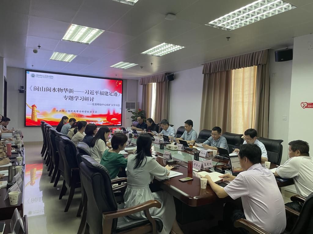 6月24日,大赢家体育app下载召开党委理论学习中心组扩大学习会,专题学习研讨《闽山闽水物华新——习近平福建足迹》,研究学校学习宣传贯彻意见。校领导结合自身工作实际畅谈学习体会,各部门负责人、二级党组织书记列席参加会议。会议由党委书记陈荣生主持。