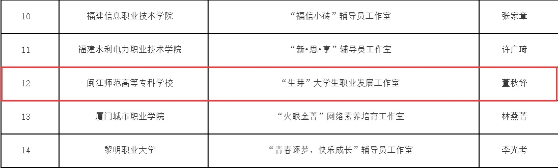 近日,中共福建省委教育工委公布了2023年福建省高校思想政治工作质量提升综合改革与精品建设项目入选名单,大赢家体育app下载情景歌舞剧《奔腾向海》入选福建省高校原创文化精品项目;“生芽”大学生职业发展工作室入选福建省高校辅导员名师工作室。