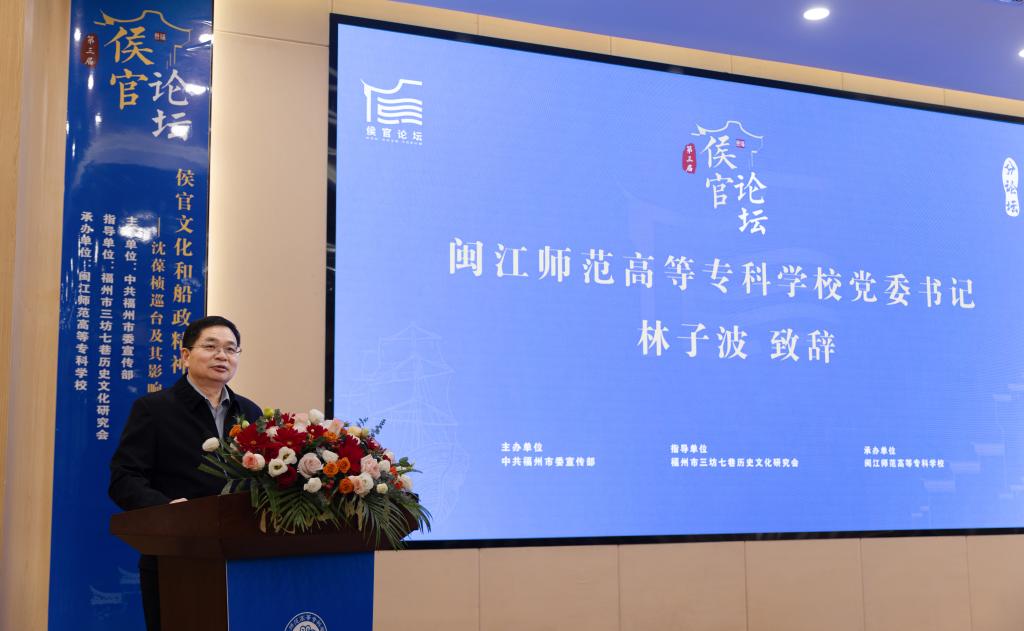 党委书记林子波在致辞中表示,侯官文化是闽都文化之源,是福建文化的一颗璀璨明珠,闽剧是侯官文化的重要组成部分,长期以来,学校发挥专长,培养闽剧人才,排演优秀剧目,赴境内外演出,助力侯官文化更好传承、更广传播。学校也将以承办论坛为契机,将侯官文化作为落实立德树人根本任务的重要资源,嵌入“大思政课”体系、融入校园文化建设,努力推动侯官文化创造性转化、创新性发展,以时代精神激活中华优秀传统文化生命力。