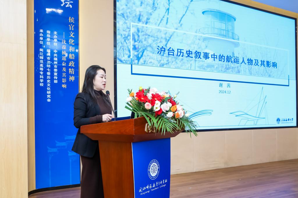 论坛分主旨发言和圆桌论坛两个环节。主旨发言由党委书记林子波书记主持。上海海事大学马克思主义学院副院长、海洋文化研究所执行所长谢茜以《沪台历史叙事中的航运人物及其影响》为题,马尾船政研究会会长陈悦以《1874“保台”与沈葆桢海军建设构想的形成》为题作主旨报告。