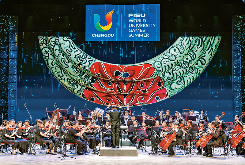 图为2023年7月30日,音乐家在为参加成都大运会的各代表团成员演奏《瑶族舞曲》。新华社记者 沈伯韩/摄
