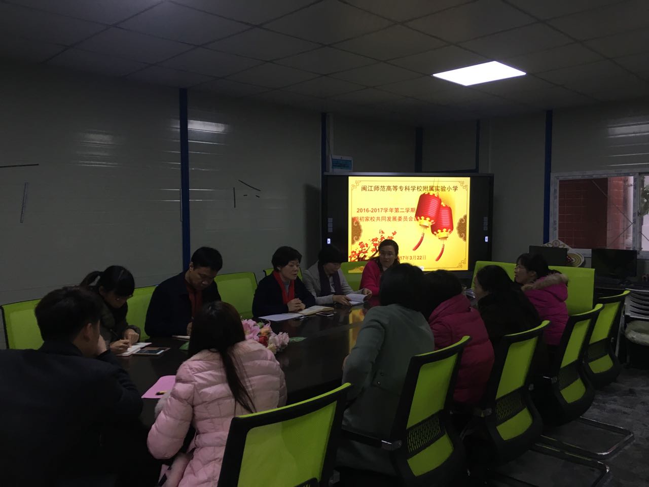 为了进一步加强学校与家庭、教师与家长之间的联系,增进每一位家长对学校工作的了解,同时更全面地了解自己的孩子在校的学习情况,真正达到家校联合共同培养孩子的目标。闽江师专附小于 2017年3月22日晚,召开了闽江师专附小2016-2017学年第二学期期初家校共同发展委员会议。为了使这次活动顺利开展,学校领导和教师十分重视,精心准备各项工作。