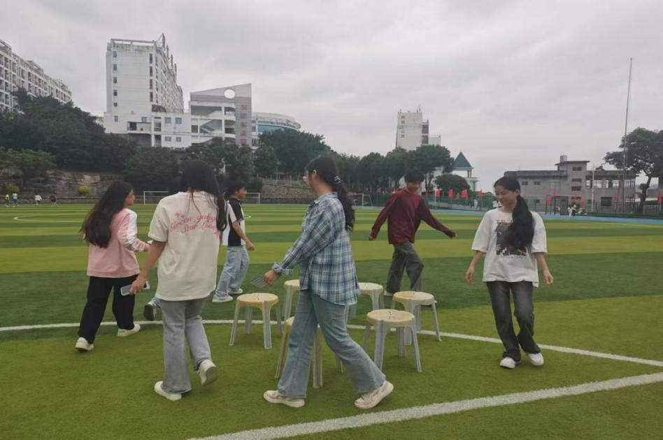趣味运动会设抢凳子、纸筒传球等项目。赛前,裁判老师强调了比赛规则和安全注意事项。赛中,选手们团结协作、奋力拼搏,无论是在激烈的角逐中,还是在互动环节,各位选手都以饱满的热情和乐观的态度参与其中,展现出了良好的精神面貌和青春风采,为趣味运动会增添了无限的活力和魅力。