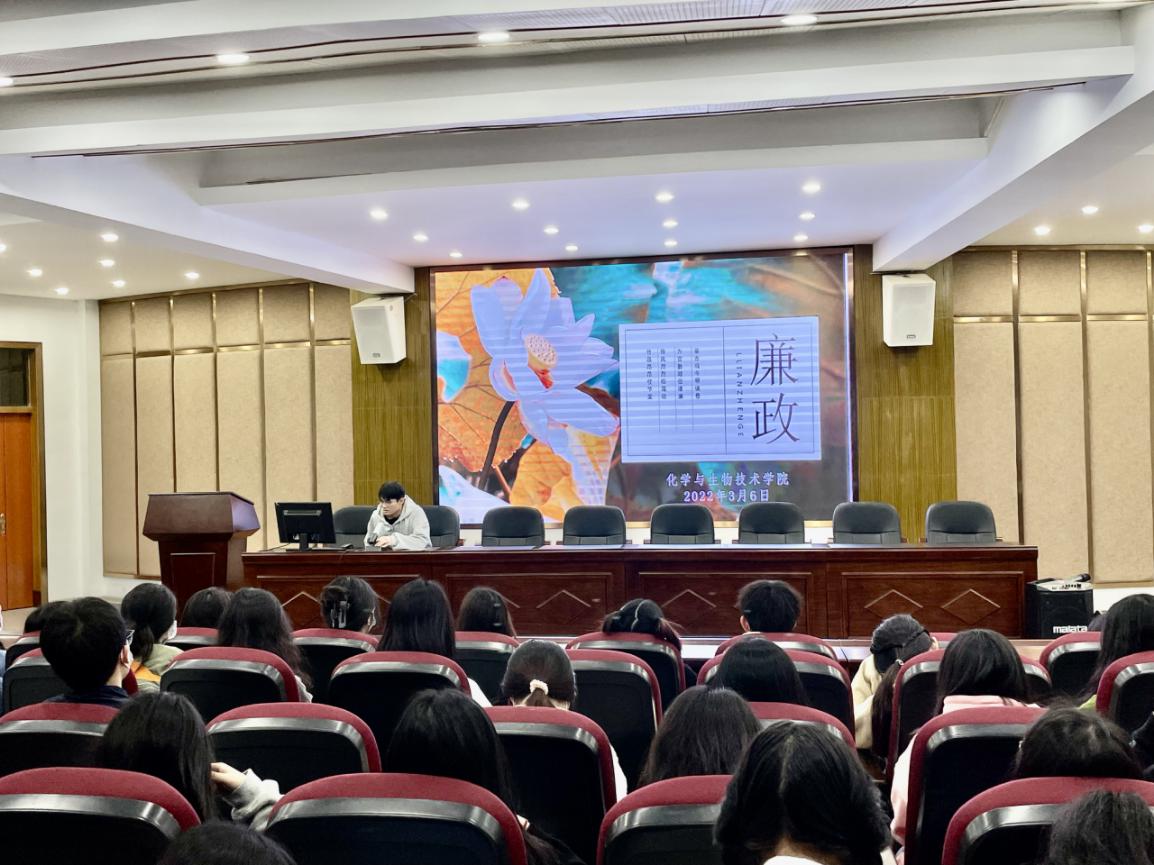 为进一步加强校园廉洁文化建设,切实加强领会高校教育阵地在“廉洁文化”教育活动的重要性,有效开展廉洁文化进校园的工作,营造“以廉为荣、以贪为耻”的校园文化氛围,化学与生物技术学院于2022年3月面向全体学生开展了以“紧跟时代步伐,坚定反腐倡廉”为主题的系列教育活动。