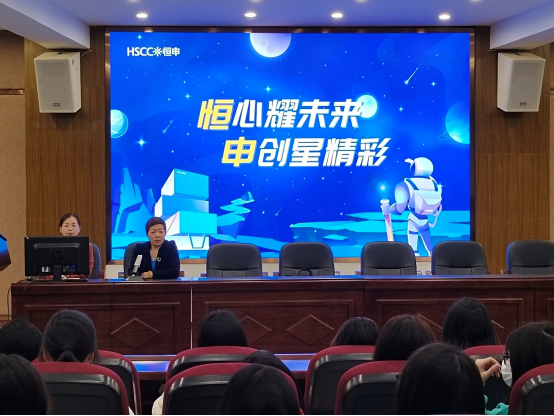 “加入恒申选拔班专属通道,错峰竞争放大可能,恒申助你全程无忧”。宣讲会上,恒申集团人力资源负责人先以短视频的方式介绍企业发展概况,并重点介绍了化工新材料产业学院选拔班办班情况。